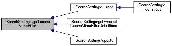 Here is the call graph for this function:| ilSearchSettings::getEnabledLuceneMimeFilterDefinitions | ( | ) |