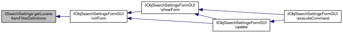 Here is the caller graph for this function:| ilSearchSettings::getEnabledLuceneItemFilterDefinitions | ( | ) |