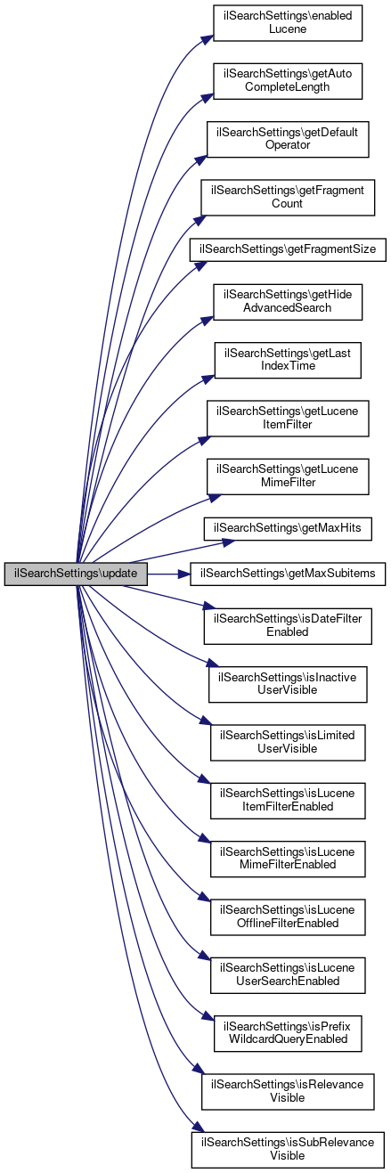 Here is the caller graph for this function:| ilSearchSettings::update | ( | ) |