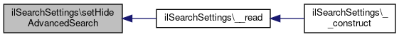 Here is the caller graph for this function:| ilSearchSettings::setHideAdvancedSearch | ( | bool | $a_status | ) |