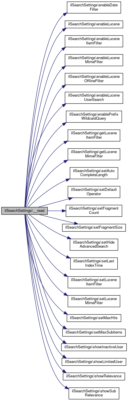 Here is the caller graph for this function:| ilSearchSettings::enableLuceneMimeFilter | ( | bool | $a_stat | ) |