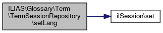 Here is the call graph for this function:| ILIAS\Glossary\Term\TermSessionRepository::setLang | ( | int | $ref_id, |