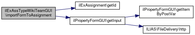 Here is the call graph for this function:| ilExAssTypeWikiTeamGUI::importFormToAssignment | ( | ilExAssignment | $ass, |