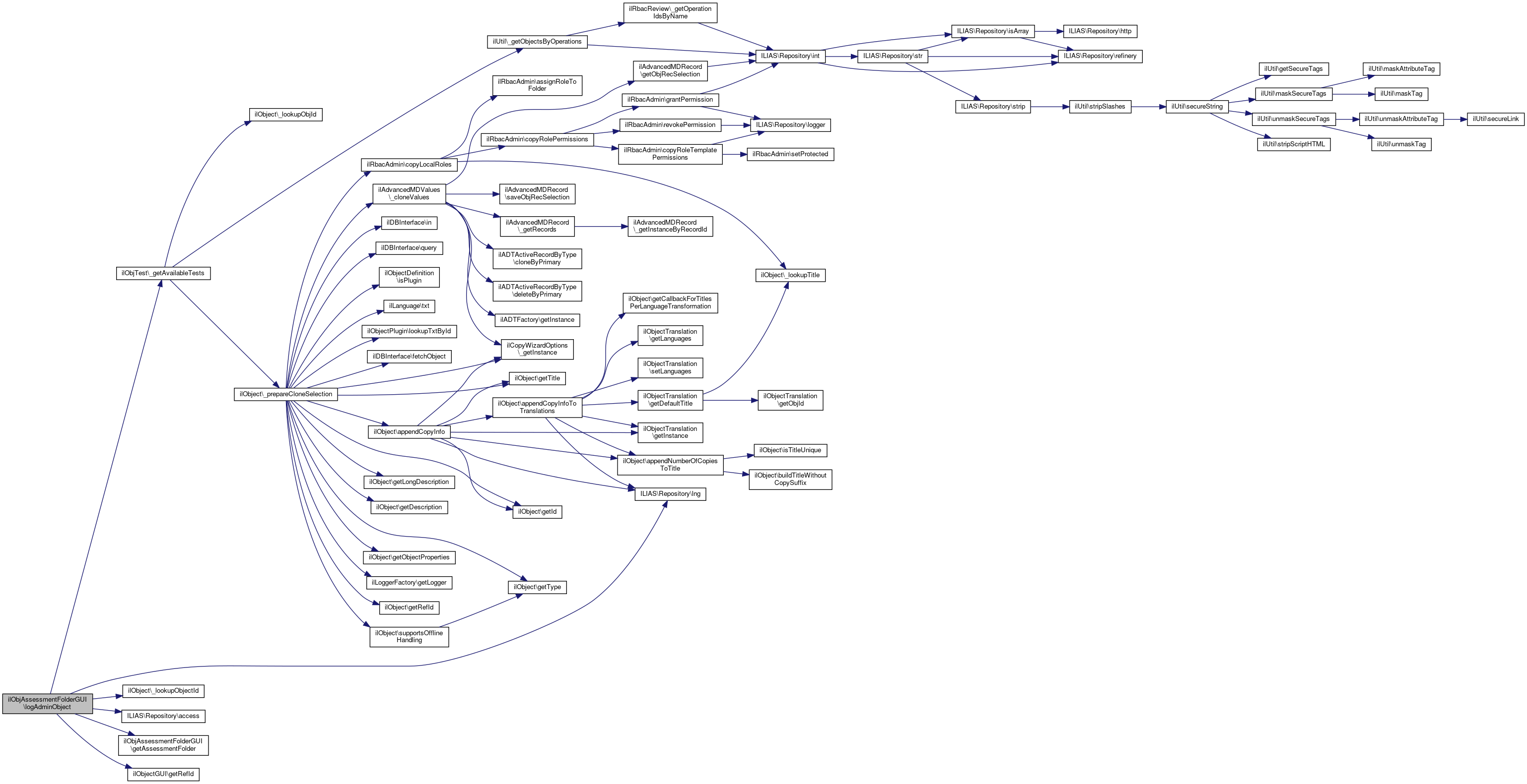 Here is the caller graph for this function:| ilObjAssessmentFolderGUI::logAdminObject | ( | ) |