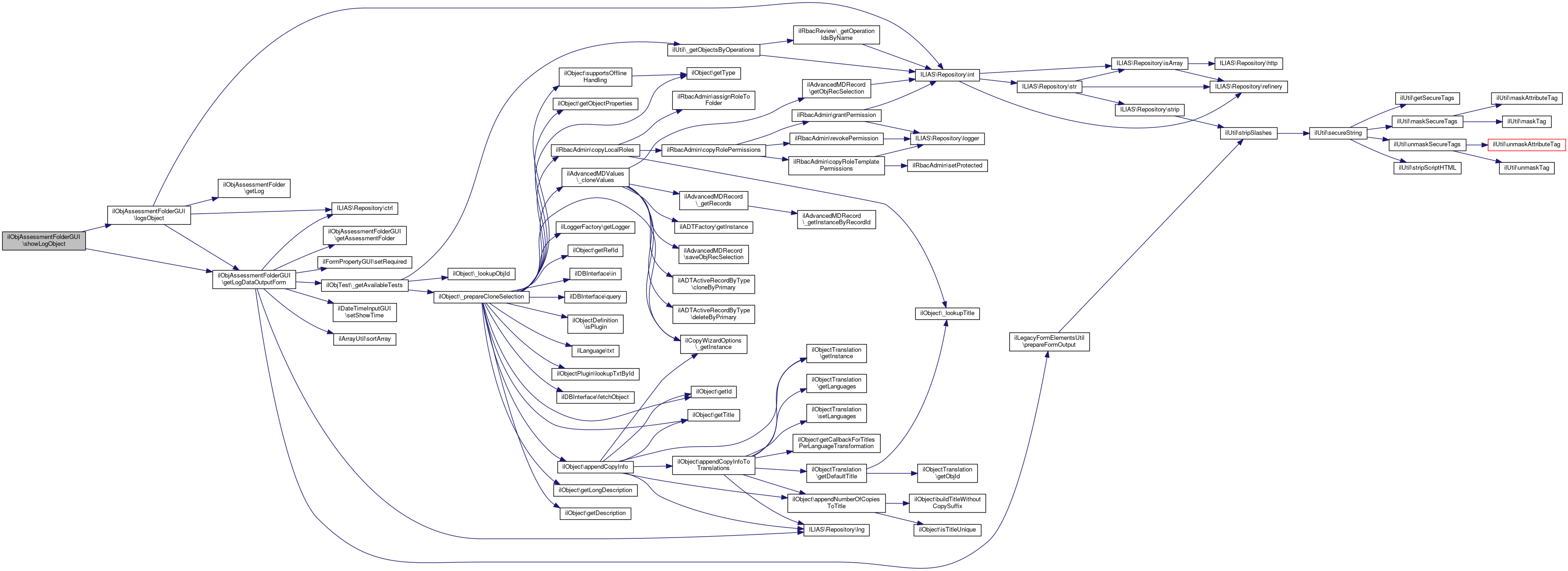 Here is the caller graph for this function:| ilObjAssessmentFolderGUI::showLogObject | ( | ) |