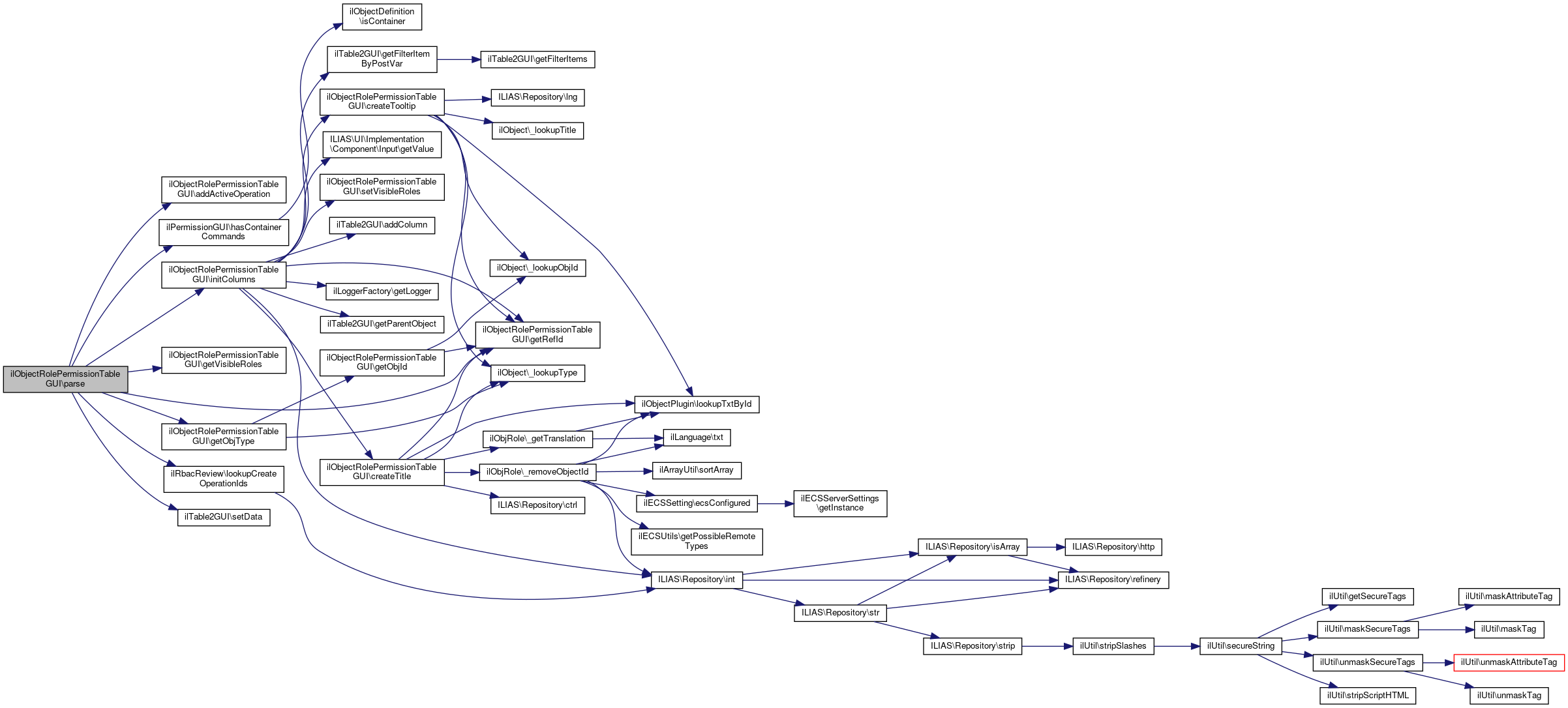 Here is the caller graph for this function:| ilObjectRolePermissionTableGUI::parse | ( | ) |