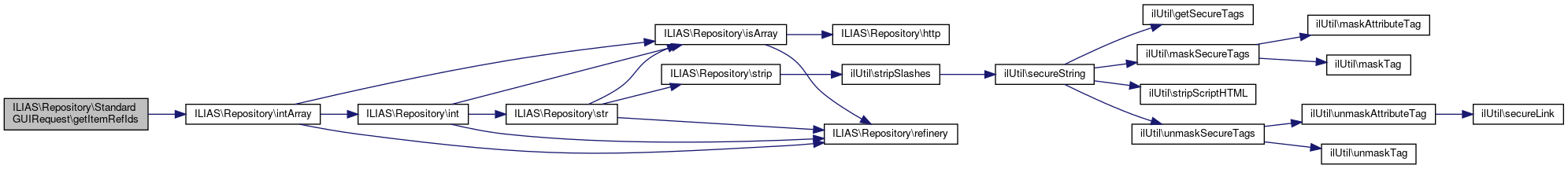 Here is the call graph for this function:| ILIAS\Repository\StandardGUIRequest::getItemRefIds | ( | ) |