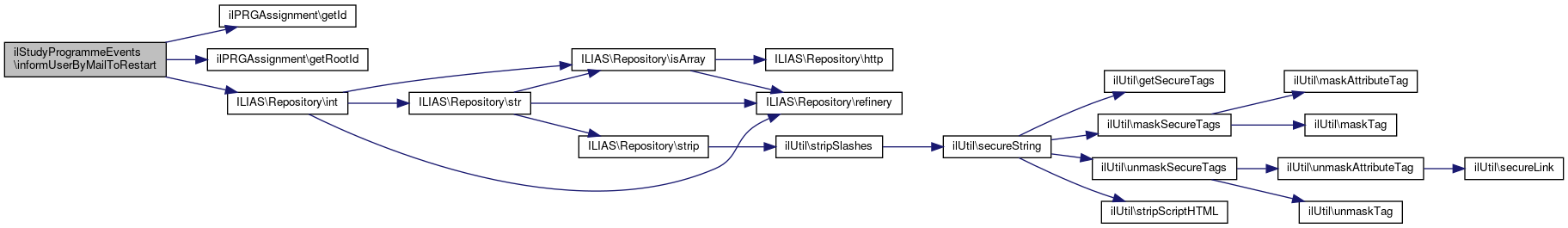 Here is the call graph for this function:| ilStudyProgrammeEvents::informUserByMailToRestart | ( | ilPRGAssignment | $assignment | ) |