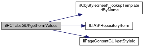 Here is the call graph for this function:| ilPCTabsGUI::getFormValues | ( | ) |