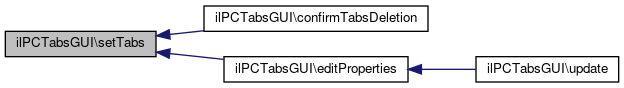 Here is the caller graph for this function:| ilPCTabsGUI::setTabs | ( | ) |