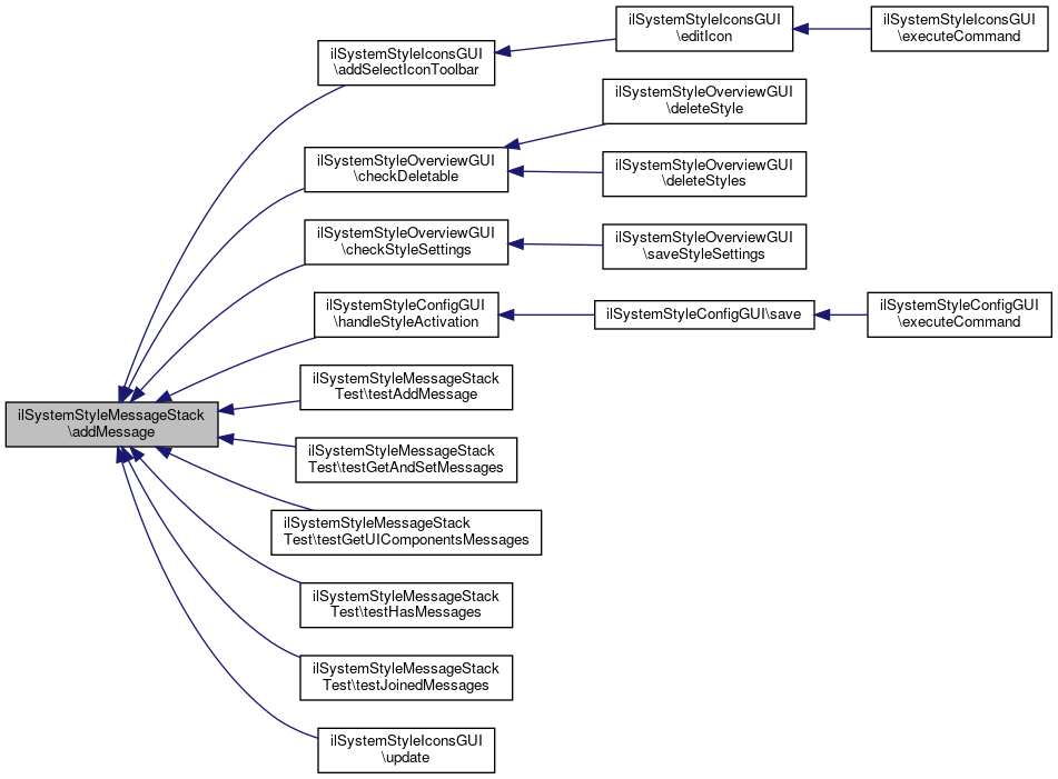 Referenced by ilSystemStyleIconsGUI\addSelectIconToolbar(), ilSystemStyleOverviewGUI\checkDeletable(), ilSystemStyleOverviewGUI\checkStyleSettings(), ilSystemStyleConfigGUI\handleStyleActivation(), ilSystemStyleMessageStackTest\testAddMessage(), ilSystemStyleMessageStackTest\testGetAndSetMessages(), ilSystemStyleMessageStackTest\testGetUIComponentsMessages(), ilSystemStyleMessageStackTest\testHasMessages(), ilSystemStyleMessageStackTest\testJoinedMessages(), and ilSystemStyleIconsGUI\update().
