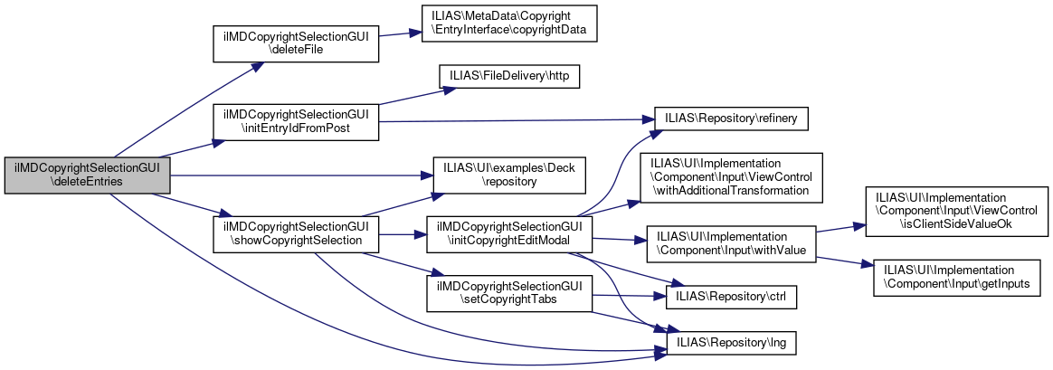 Here is the call graph for this function:| ilMDCopyrightSelectionGUI::deleteEntries | ( | ) |