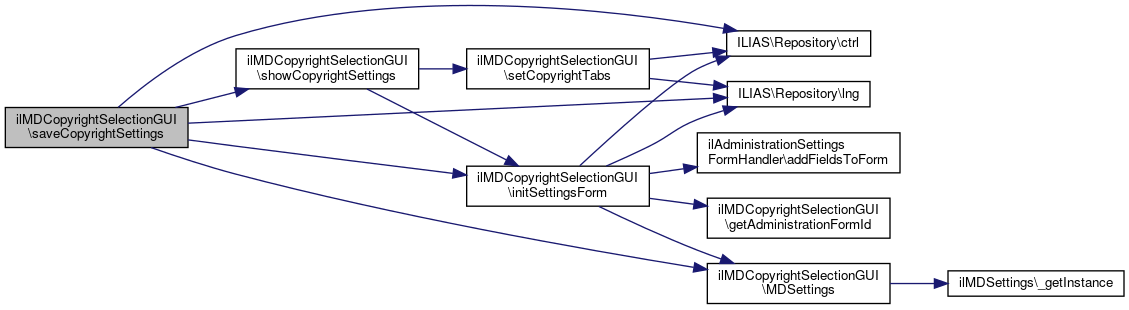 Here is the call graph for this function:| ilMDCopyrightSelectionGUI::saveCopyrightSettings | ( | ) |