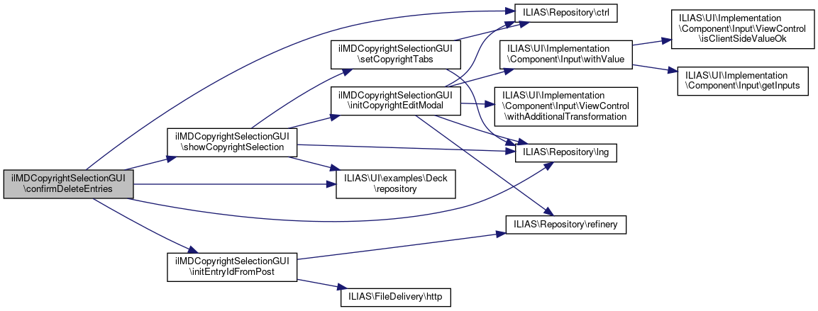 Here is the call graph for this function:| ilMDCopyrightSelectionGUI::confirmDeleteEntries | ( | ) |