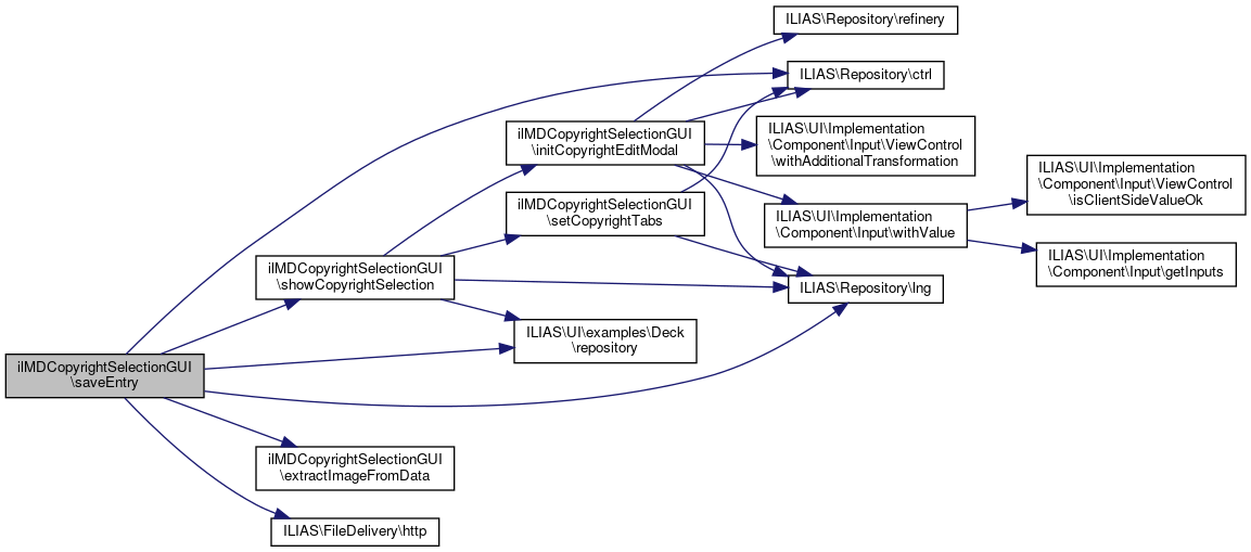 Here is the call graph for this function:| ilMDCopyrightSelectionGUI::saveEntry | ( | ) |