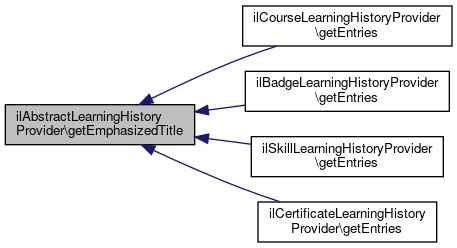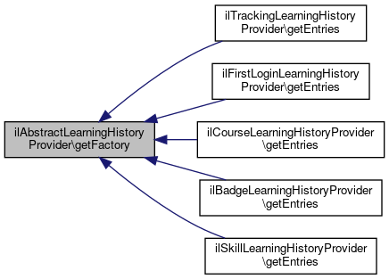 Referenced by ilCourseLearningHistoryProvider\getEntries(), ilBadgeLearningHistoryProvider\getEntries(), ilSkillLearningHistoryProvider\getEntries(), and ilCertificateLearningHistoryProvider\getEntries().