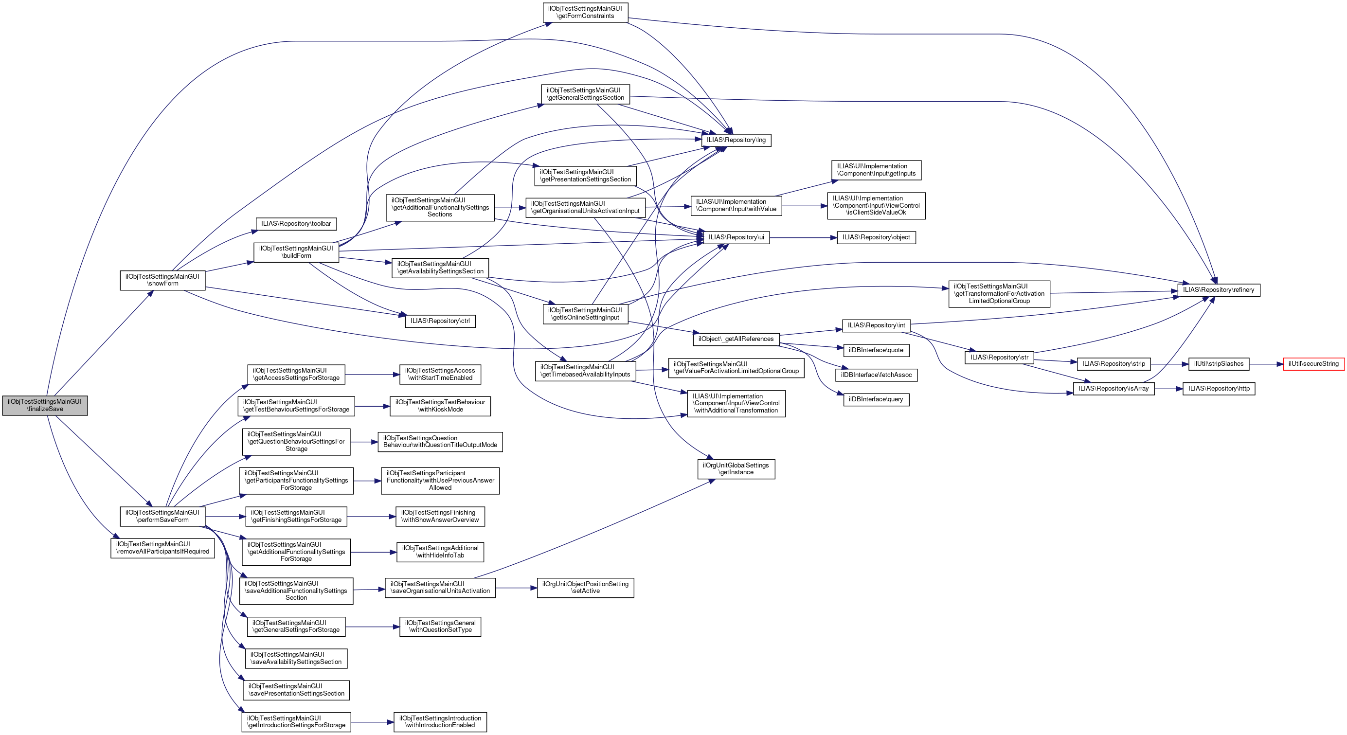References getAccessSettingsForStorage(), getAdditionalFunctionalitySettingsForStorage(), getFinishingSettingsForStorage(), getGeneralSettingsForStorage(), getIntroductionSettingsForStorage(), getParticipantsFunctionalitySettingsForStorage(), getQuestionBehaviourSettingsForStorage(), getTestBehaviourSettingsForStorage(), saveAdditionalFunctionalitySettingsSection(), saveAvailabilitySettingsSection(), and savePresentationSettingsSection().
