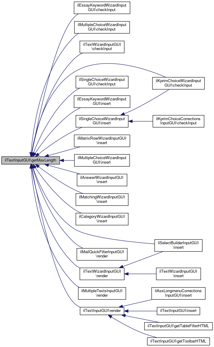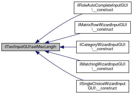 Here is the caller graph for this function:| ilTextInputGUI::setMaxLength | ( | ?int | $a_maxlength | ) |