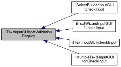 Here is the caller graph for this function:| ilTextInputGUI::getValidationRegexp | ( | ) |