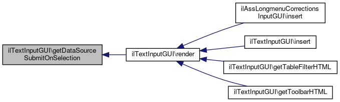 Here is the caller graph for this function:| ilTextInputGUI::setDataSourceSubmitOnSelection | ( | bool | $a_stat | ) |