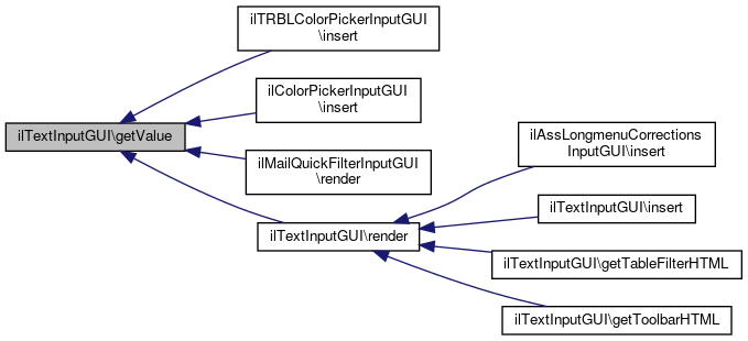 Here is the caller graph for this function:| ilTextInputGUI::getValue | ( | ) |