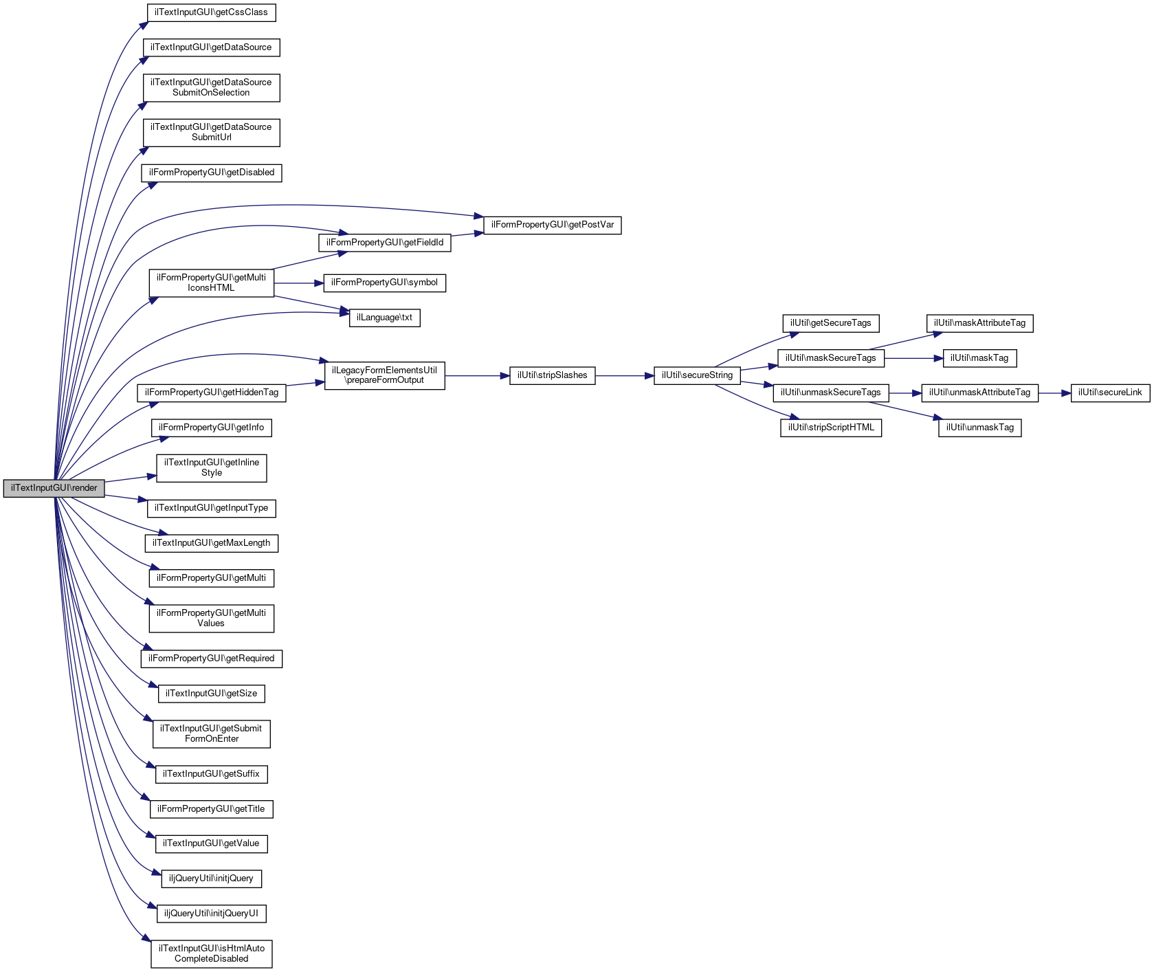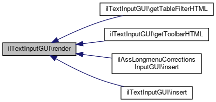 Here is the caller graph for this function:| ilTextInputGUI::render | ( | string | $a_mode = "" | ) |