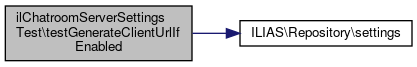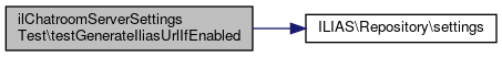 Here is the call graph for this function:| ilChatroomServerSettingsTest::testGenerateIliasUrlIfEnabled | ( | ) |