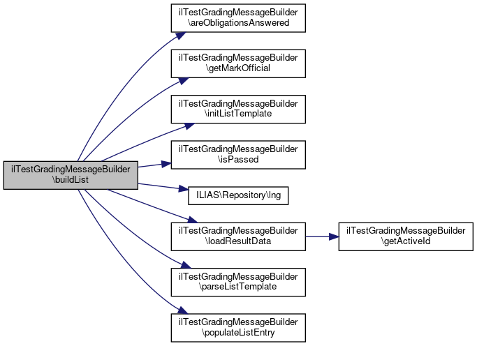 Here is the caller graph for this function:| ilTestGradingMessageBuilder::buildList | ( | ) |