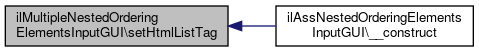 Here is the caller graph for this function:| ilMultipleNestedOrderingElementsInputGUI::setHtmlListTag | ( | $htmlListTag | ) |