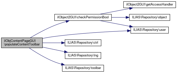 References ilObject2GUI\checkPermission(), getContent(), ILIAS\Repository\object(), and populateContentToolbar().