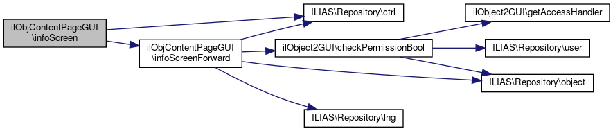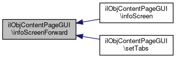 Here is the call graph for this function:| ilObjContentPageGUI::infoScreenForward | ( | ) |