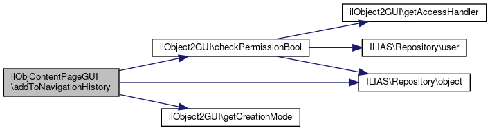 Here is the call graph for this function:| ilObjContentPageGUI::addToNavigationHistory | ( | ) |