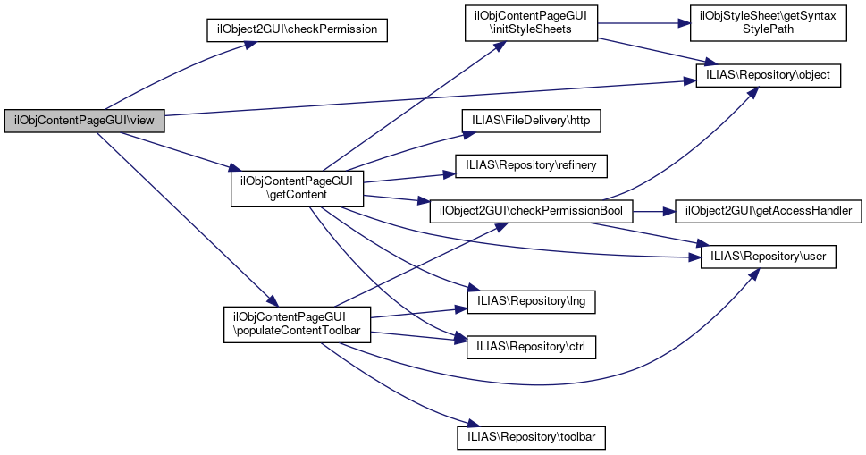 Here is the call graph for this function:| ilObjContentPageGUI::view | ( | ) |