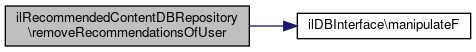 Here is the call graph for this function:| ilRecommendedContentDBRepository::removeRecommendationsOfUser | ( | int | $user_id | ) |
