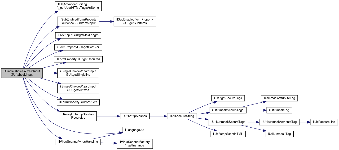 Here is the call graph for this function:| ilSingleChoiceWizardInputGUI::checkInput | ( | ) |