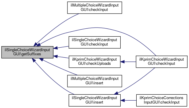 Here is the caller graph for this function:| ilSingleChoiceWizardInputGUI::getSuffixes | ( | ) |