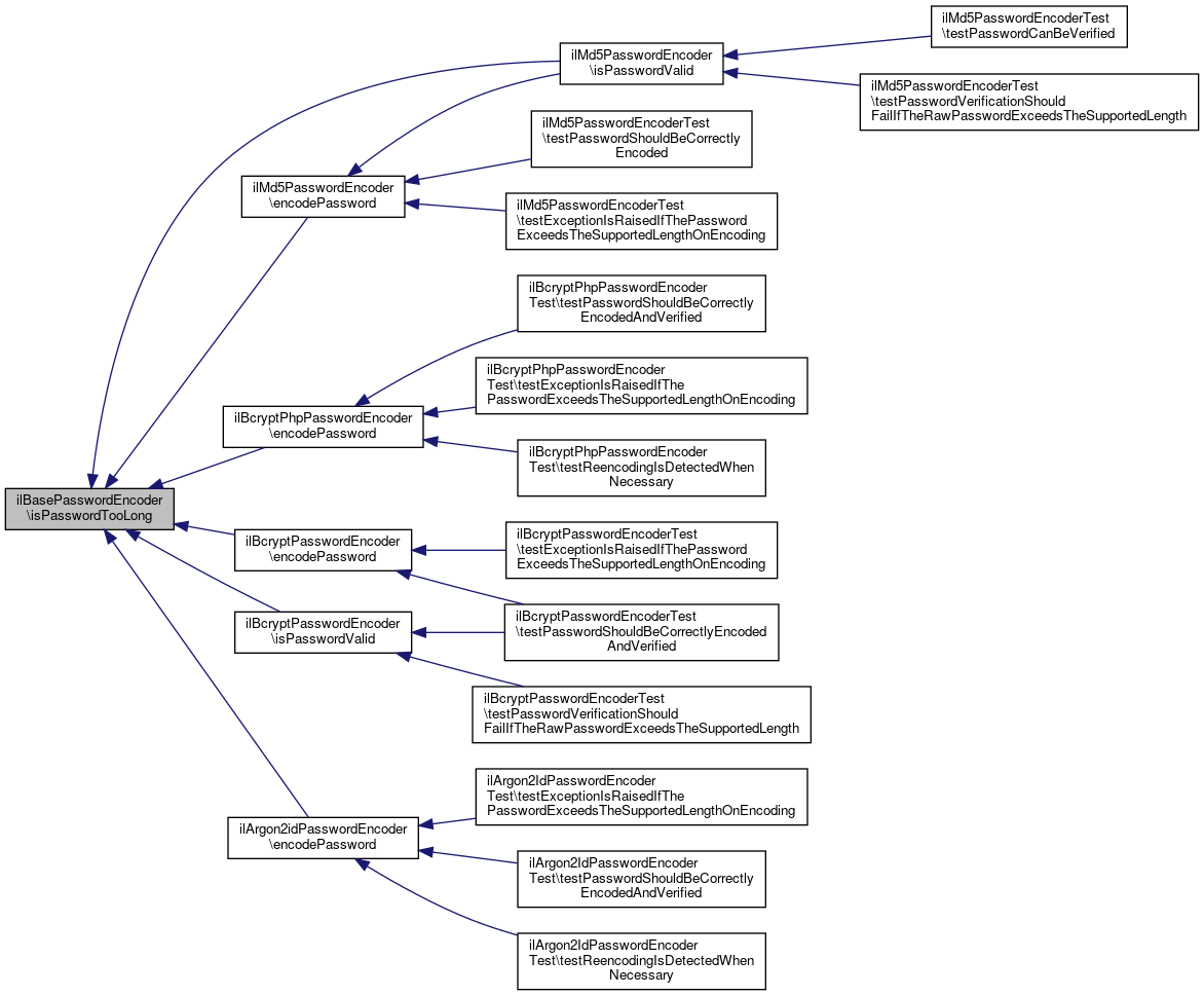 Referenced by ilMd5PasswordEncoder\encodePassword(), ilBcryptPhpPasswordEncoder\encodePassword(), ilBcryptPasswordEncoder\encodePassword(), ilArgon2idPasswordEncoder\encodePassword(), ilMd5PasswordEncoder\isPasswordValid(), and ilBcryptPasswordEncoder\isPasswordValid().