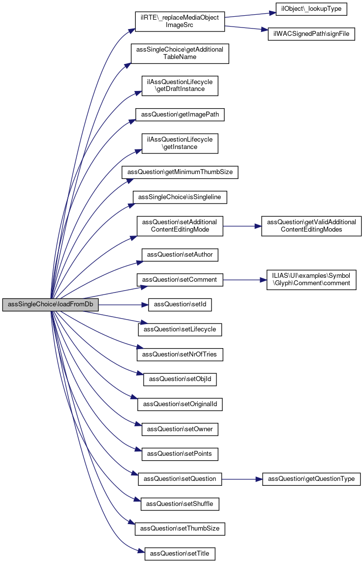 Here is the call graph for this function:| assSingleChoice::loadFromDb | ( | $question_id | ) |