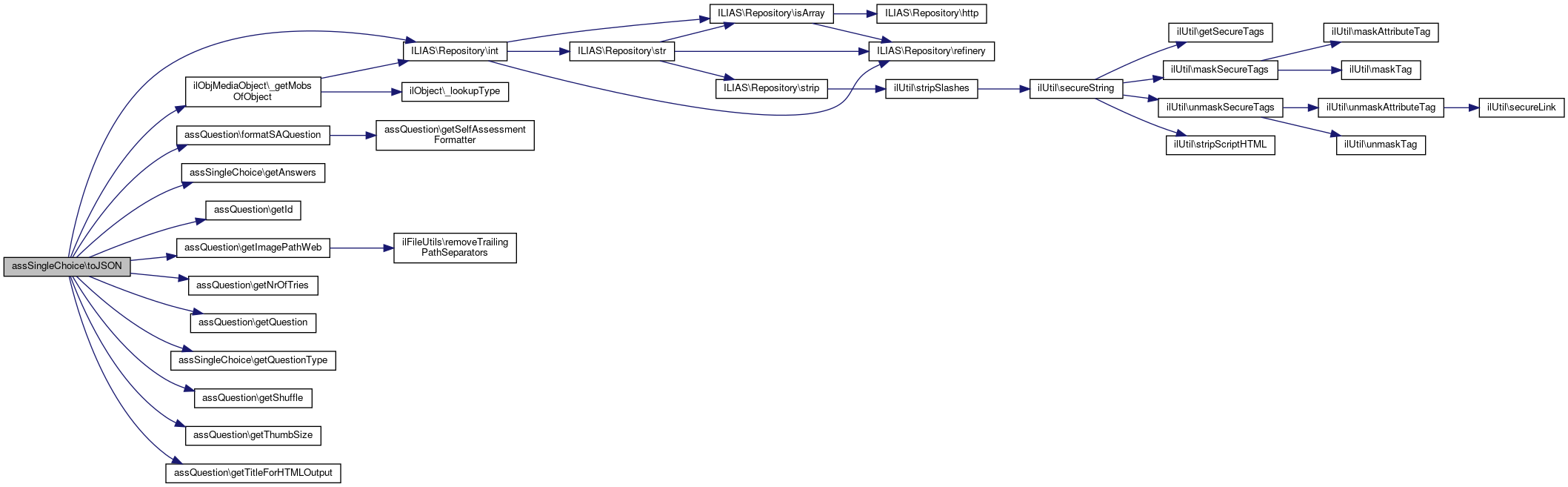 Here is the call graph for this function:| assSingleChoice::toJSON | ( | ) |
