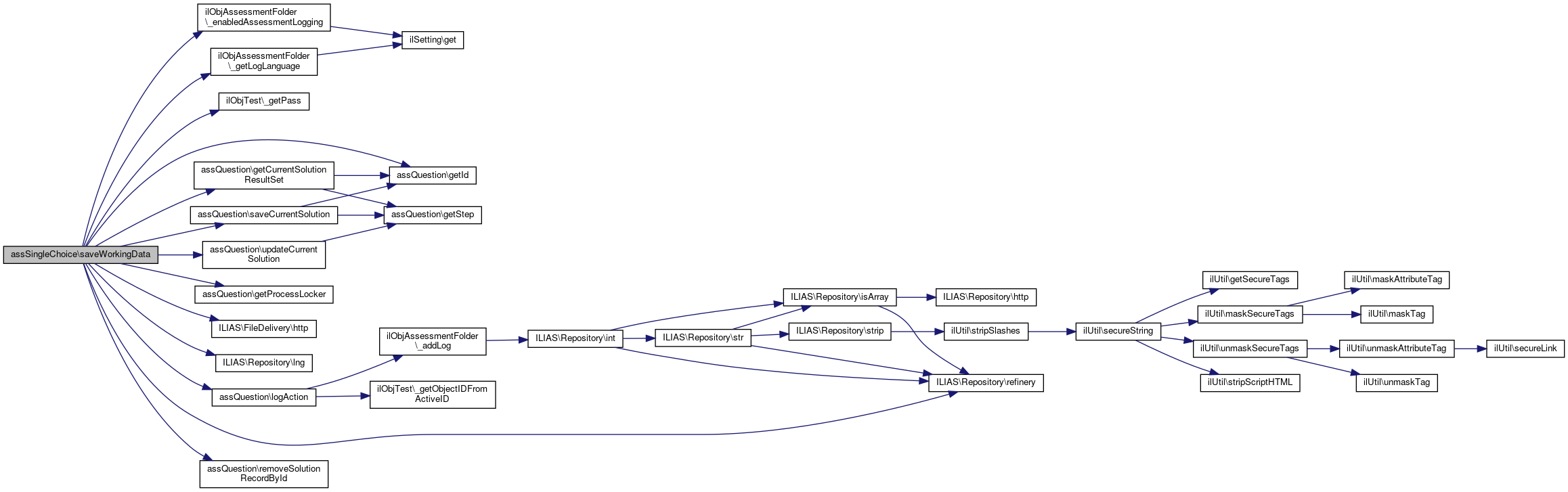 Here is the call graph for this function:| assSingleChoice::saveWorkingData | ( | $active_id, | |