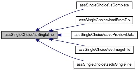 Here is the call graph for this function:| assSingleChoice::setIsSingleline | ( | bool | $isSingleline | ) |