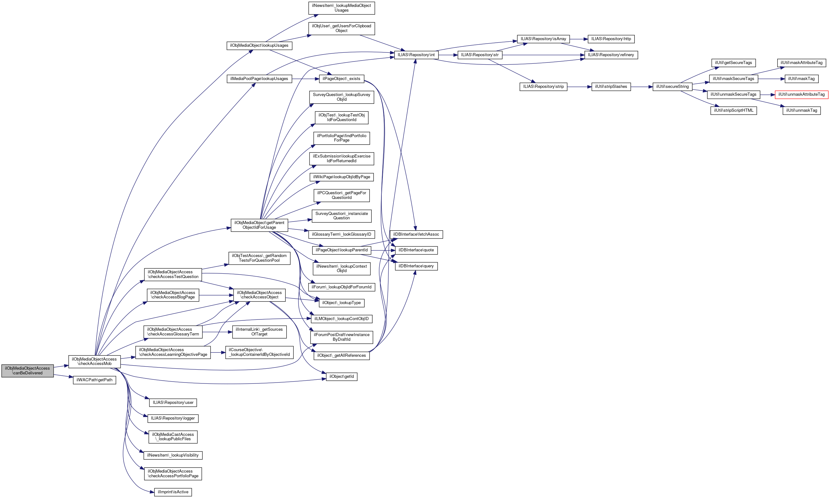 Here is the call graph for this function:| ilObjMediaObjectAccess::canBeDelivered | ( | ilWACPath | $ilWACPath | ) |