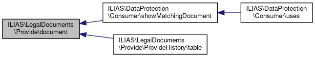 Here is the caller graph for this function:| ILIAS\LegalDocuments\Provide::document | ( | ) |