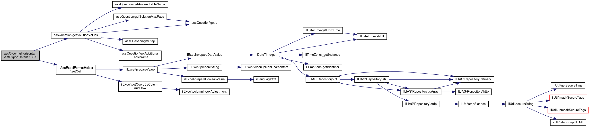 Here is the call graph for this function:| assOrderingHorizontal::setExportDetailsXLSX | ( | ilAssExcelFormatHelper | $worksheet, |