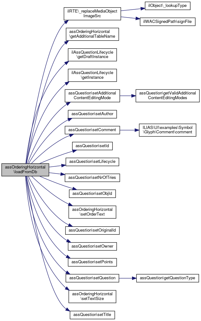 Here is the call graph for this function:| assOrderingHorizontal::loadFromDb | ( | $question_id | ) |