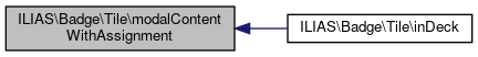 Here is the call graph for this function:| ILIAS\Badge\Tile::addAssignment | ( | ModalContent | $content, |