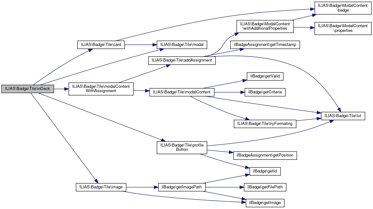 Here is the caller graph for this function:| ILIAS\Badge\Tile::inDeck | ( | ilBadge | $badge, |