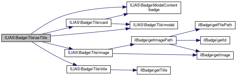 Here is the call graph for this function:| ILIAS\Badge\Tile::asTitle | ( | ModalContent | $content | ) |