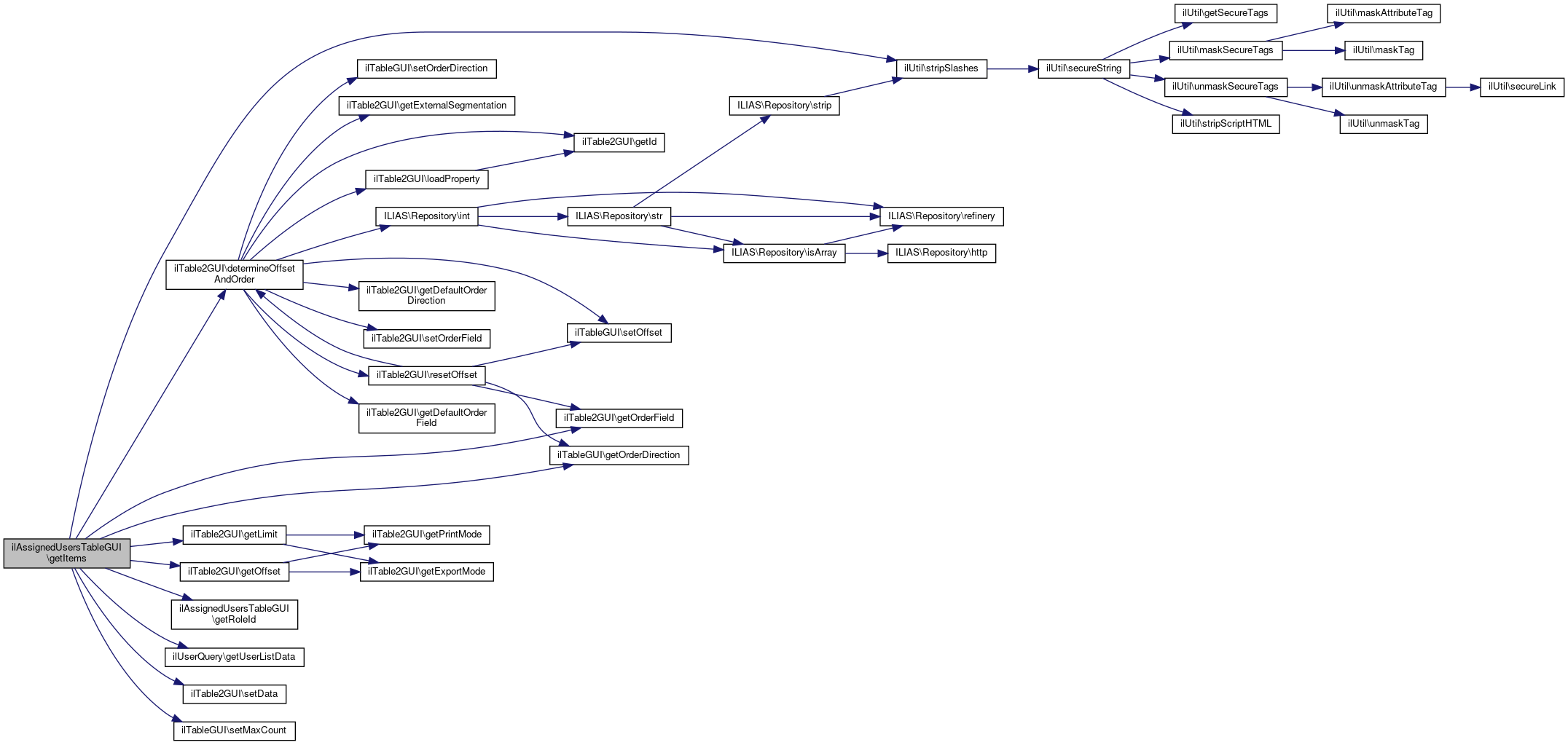Here is the caller graph for this function:| ilAssignedUsersTableGUI::getItems | ( | ) |