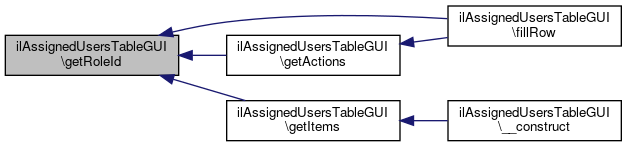 Here is the caller graph for this function:| ilAssignedUsersTableGUI::getRoleId | ( | ) |